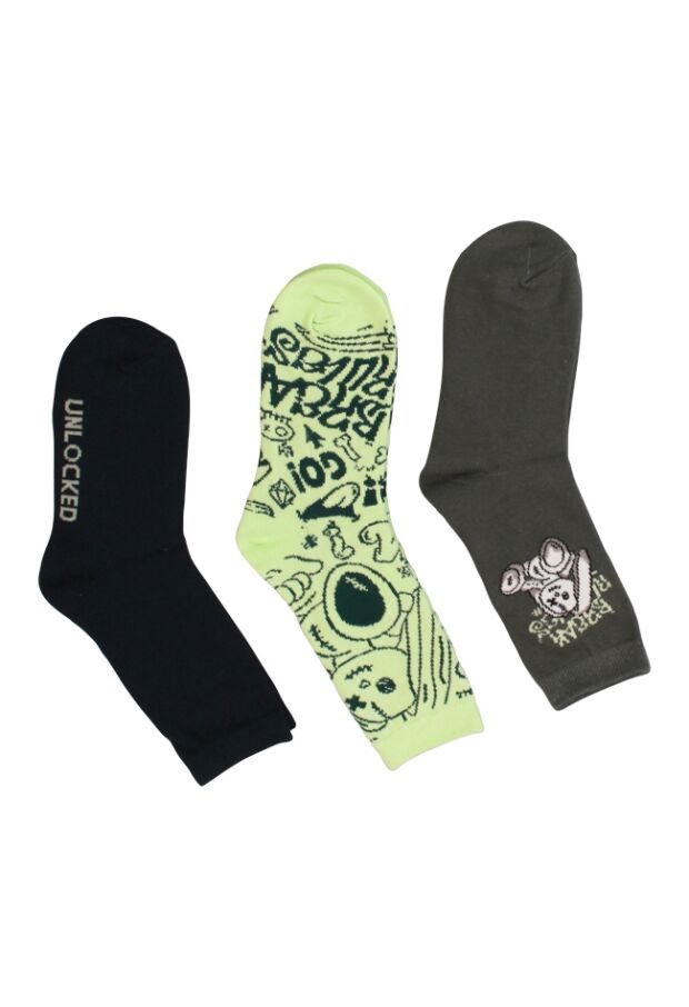 3-Pack sokken voor jongens met 1 paar effen sokken en 2 paar met afbeelding beer.