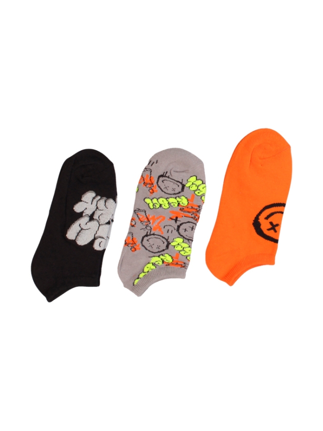 3-Pack stoere enkel sneaker sokken met graffiti prints en smileys.