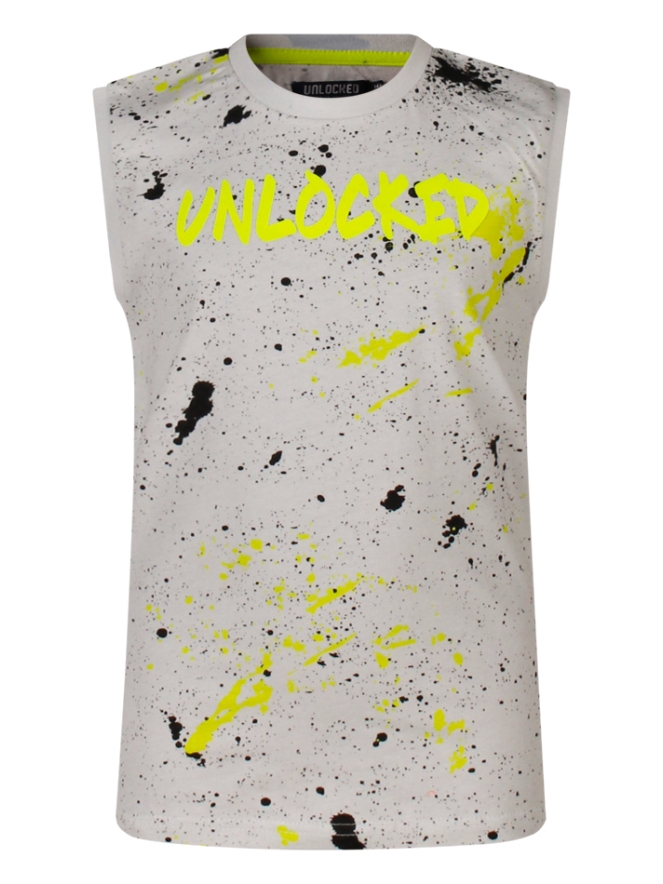 Het singlet heeft een opvallende spetterprint en een coole tekstprint op de borst. Dankzij de mouwloze pasvorm en de zachte stof is het singlet ideaal voor warme dagen. Perfect te combineren met een korte broek voor een casual en sportieve look!