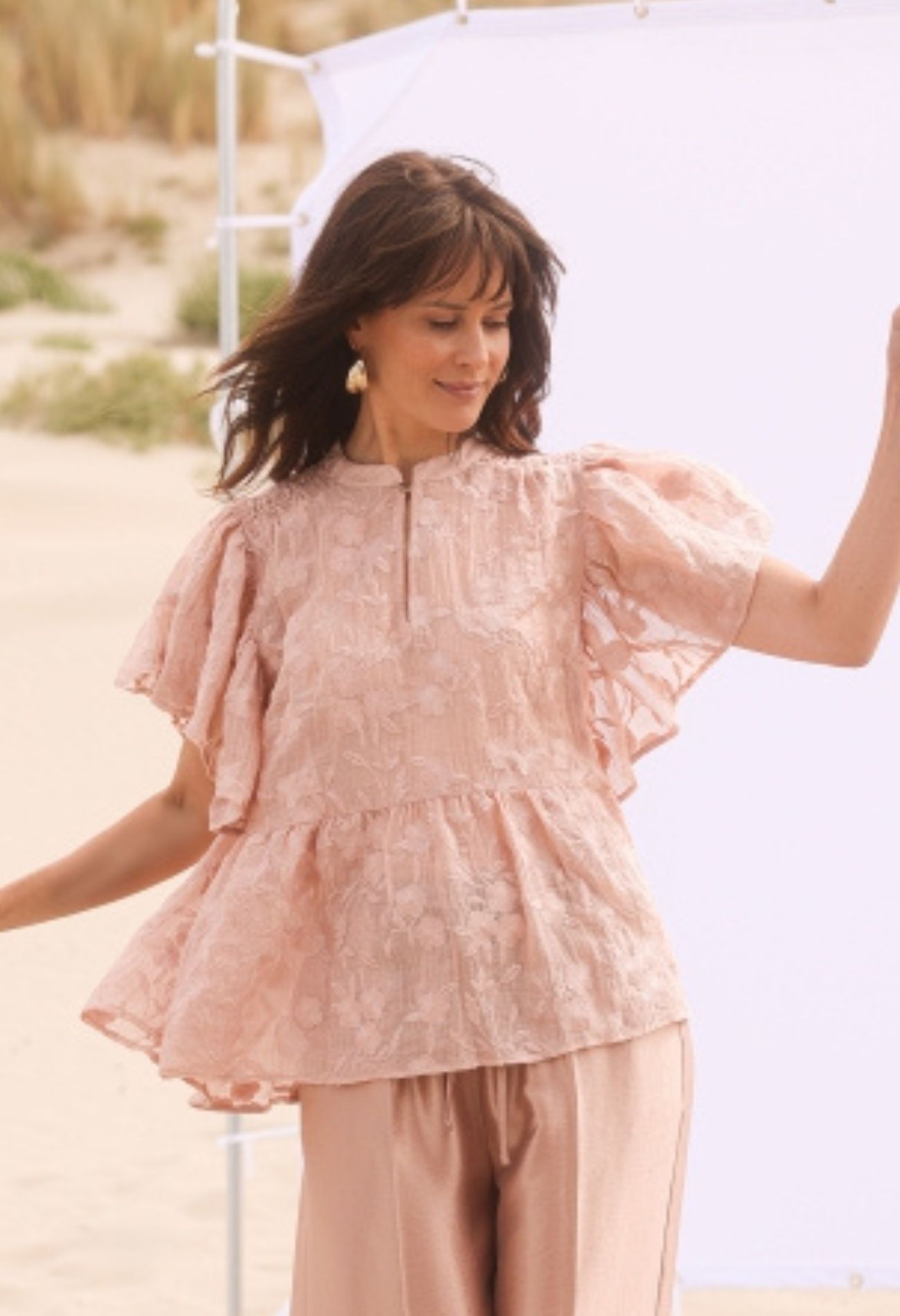 Deze sierlijke, ruimvallende top in een zachte oudroze tint straalt pure romantiek uit. De subtiele geborduurde bloemen geven het ontwerp een verfijnde en vrouwelijke uitstraling, terwijl de luchtige pasvorm zorgt voor ultiem draagcomfort. Perfect om moeiteloos een elegante en dromerige look te creëren. Zowel casual als chic te stylen. Een tijdloos item dat elke outfit een vleugje zachtheid en charme geeft.