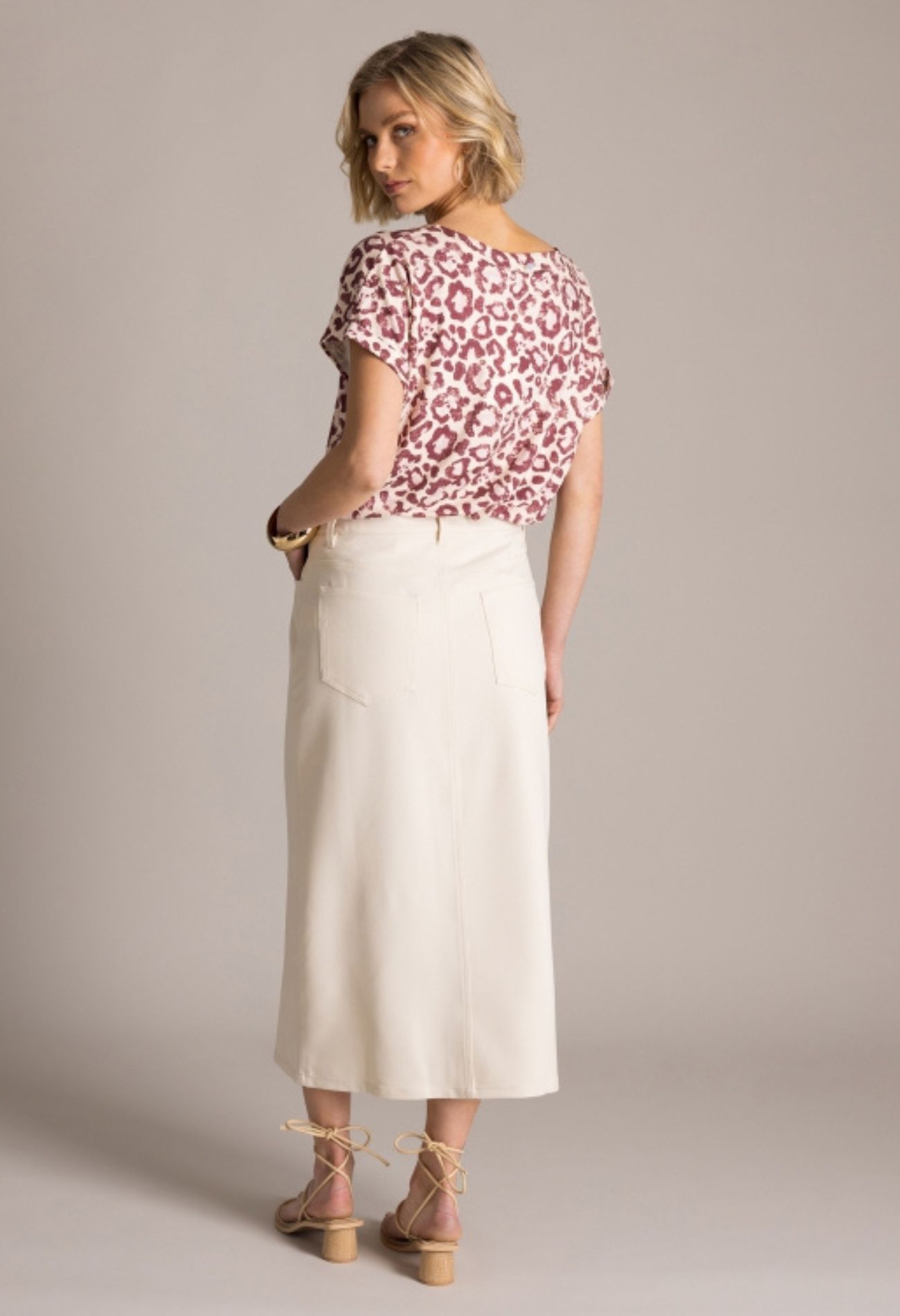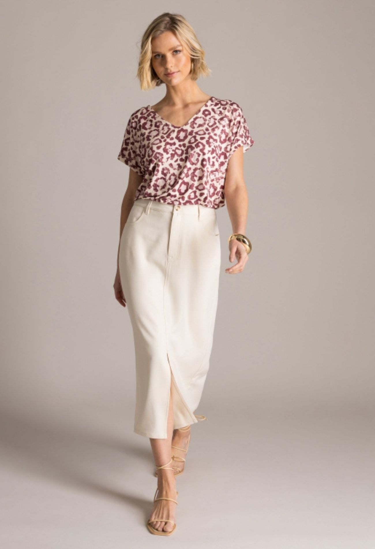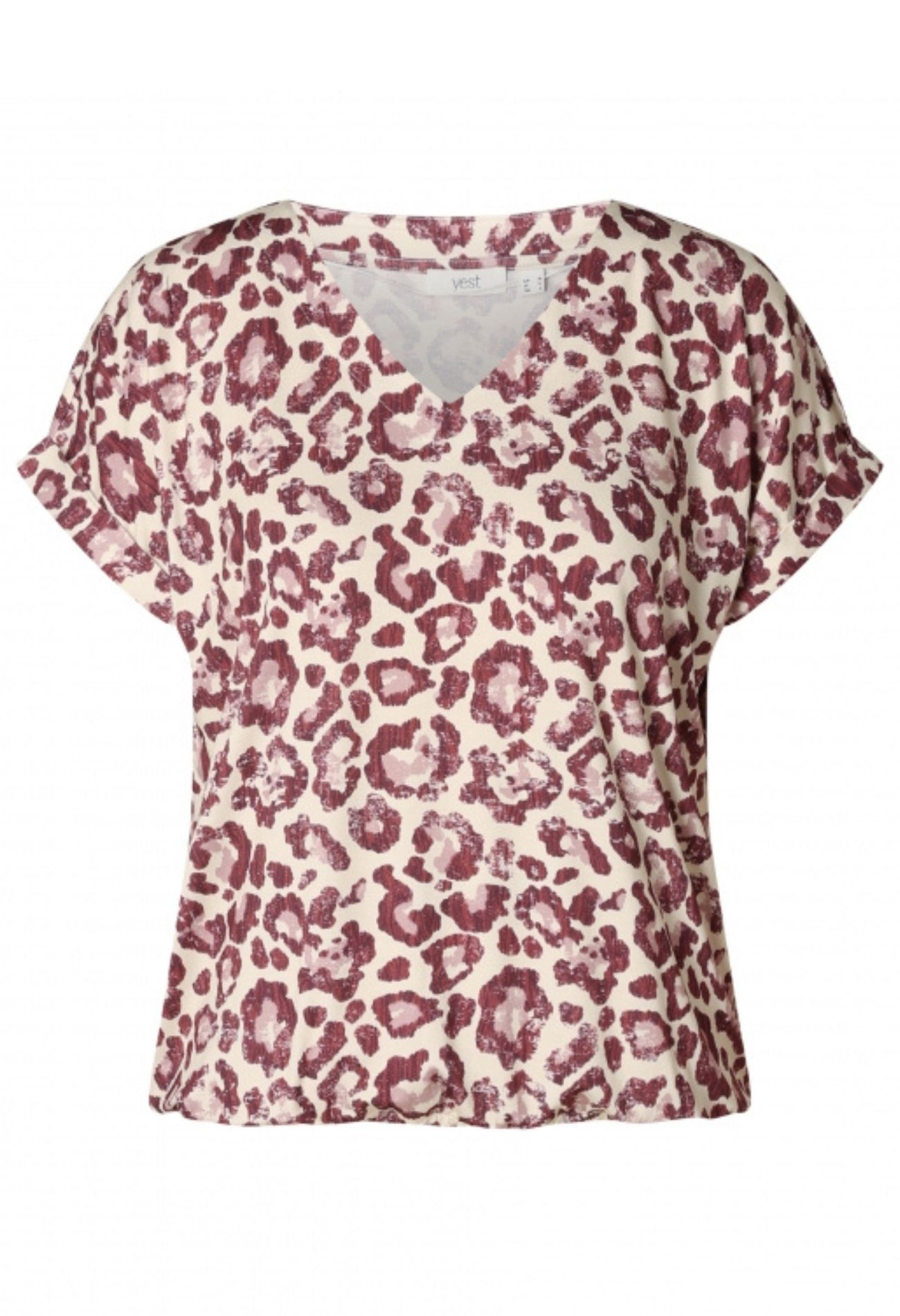 Dit vlotte T-shirtje is een echte eyecatcher dankzij de trendy panterprint. De speelse print geeft het shirt een modieuze en stoere uitstraling, perfect om je outfit net dat beetje extra te geven. Het model heeft een elastiekje in de taille, waardoor het mooi aansluit en subtiel je silhouet benadrukt. Tegelijk blijft het comfortabel dragen dankzij de zachte, soepele stof en de relaxte pasvorm.