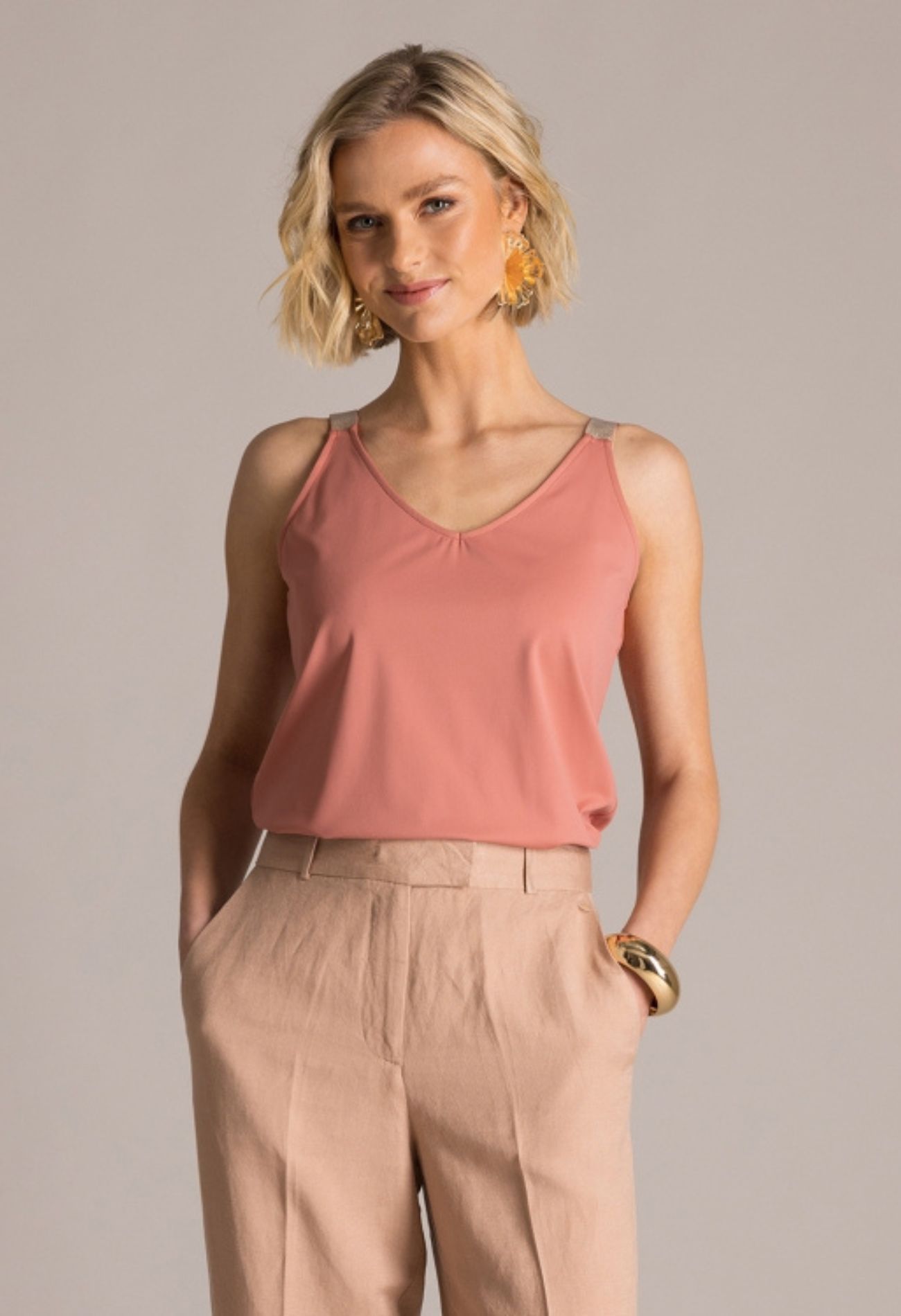 Deze stijlvolle singlet in oudroze is de perfecte combinatie van comfort en elegantie. Gemaakt van een soepele travelstof die licht, ademend en kreukvrij is. Ideaal voor onderweg of een drukke dag.
